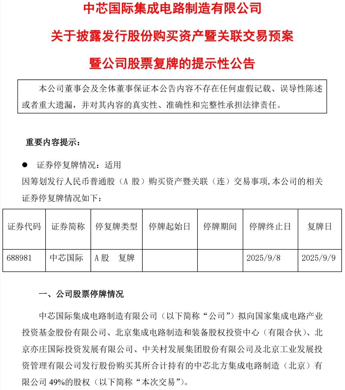 炒股就看金麒麟分析师研报,泰斗,专科,实时,全面,助您挖掘后劲主题契机! 每经记者|朱成祥 9月8日晚间,中芯海外(688981.SH,股价114.76元,市值9166亿元)清晰刊行股份购买财富暨干系来回预案。公司拟刊行股份购买中芯朔方,刊行价为74.20元/股,为订价基准日前120个往将来的上市公司A股股票来回均价92.75元/股的80%。 照此规画,中芯海外将以“八折”刊行股票购买财富。不外,若以中芯海外停牌前A股股价114.76元/股规画,刊行价便低于八折。 值得一提的是,收购方针财富质地颇佳。2024年,中芯朔方交易收入为129.79亿元,包摄于母公司鞭策的净利润为16.82亿元,指标活动产生的现款流量净额为63.40亿元。 这次来回,中芯海外拟向国度集成电路基金、集成电路投资中心、亦庄国投、中关村发展、北京工投刊行股份购买其所握有的中芯朔方49.00%股权。本次来回完成后,中芯海外将握有中芯朔方100.00%股权,中芯朔方将成为上市公司的全资子公司。